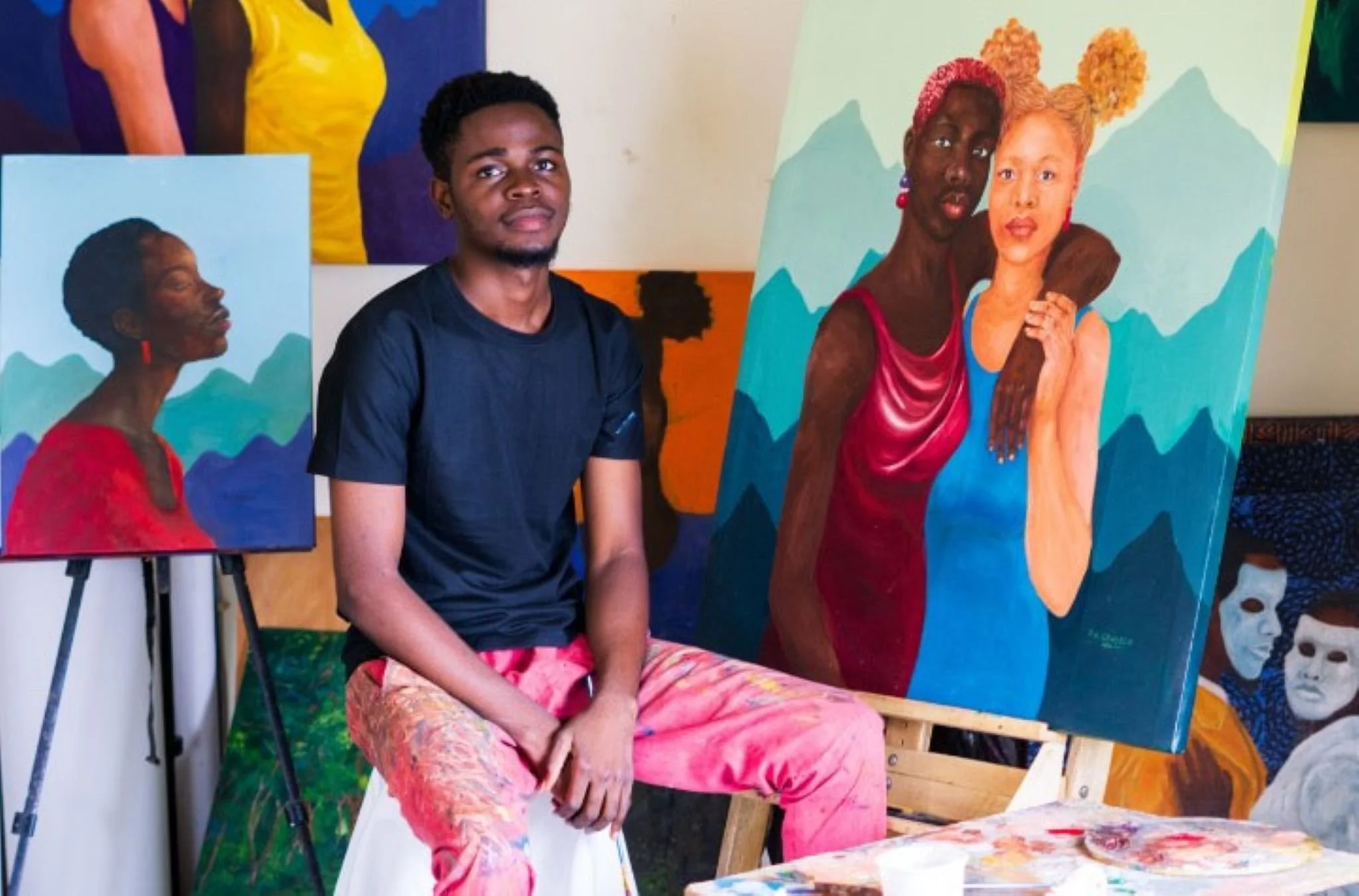 Figurative artist. And I use, basically, I use acrylic colors. I use oil colors, and oftentimes I use charcoal pencils and pastel. using acrylic on canvas and using acrylic and oil paint on canvas to explore African identity, resilience and becoming my composition, particularly my background, are intentionally minimal, allowing my subject, like giving room for my subject to command that emotional presence in the space.